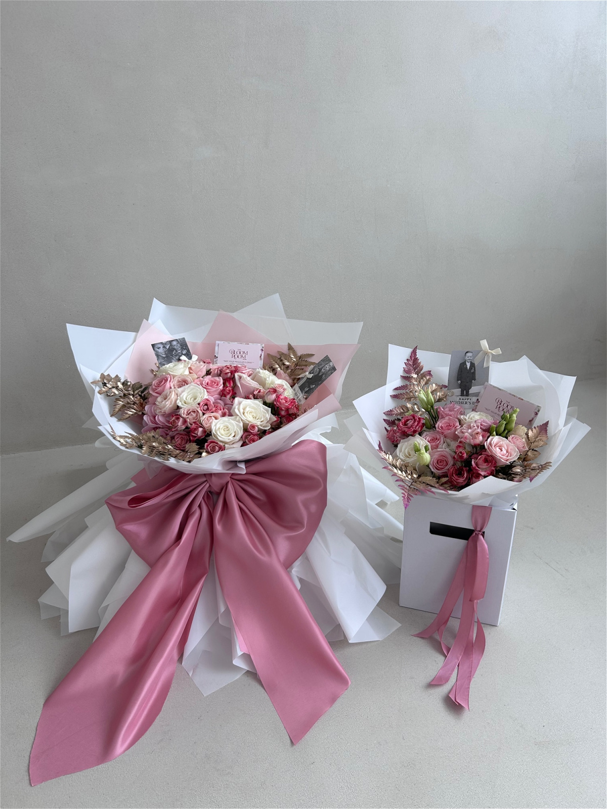 Big, bold and beautifully wrapped with our signature oversized bow. A luxury arrangement of blush and cream blooms - DONT FORGET TO ADD YOUR EXTRAS!!!